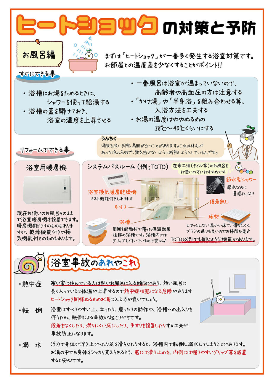 | 冬の入浴は“ヒートショック”に注意「交通事故の数倍、死者数が多い」研究も…大事なのは“温度差” 4つの対策 …分を取るようにしてください。血液がどろどろになることを防ぐことで、ヒートショック対策になります。 加えて、入浴事故は高齢者に多い傾向があるので、同居者… (出典:) |