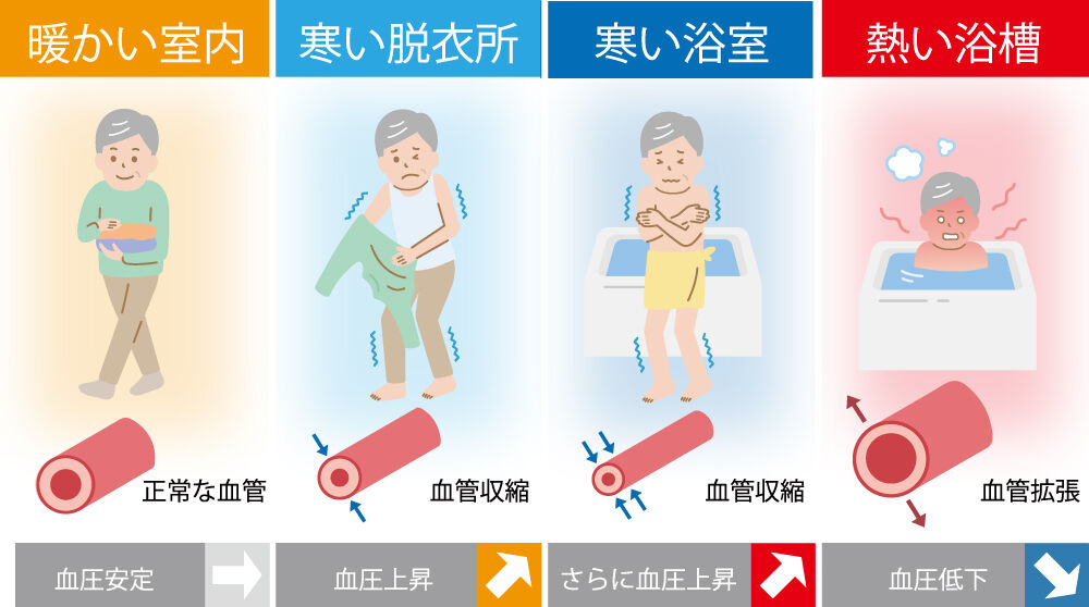 近年、寒暖差による「ヒートショック」が注目されています。特に寒い季節に入浴する際は、急激な温度変化が体に危険を及ぼすことがあります。血圧が一時的に下がることで意識を失ったり、事故に遭ったりするリスクがあるため、注意が必要です。私たちの健康を守るためには、入浴前に体温を調整し、十分に心身をリラックスさせることが大切です。